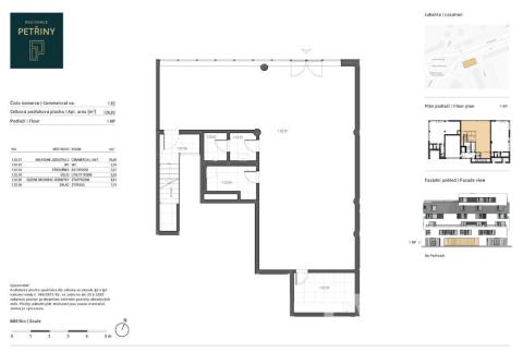 Dispozice komerčního prostoru s označením 1.02. Komerční prostor se nachází v 1.NP.