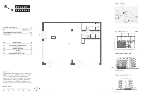 Dispozice komerčního prostoru s označením 1E.