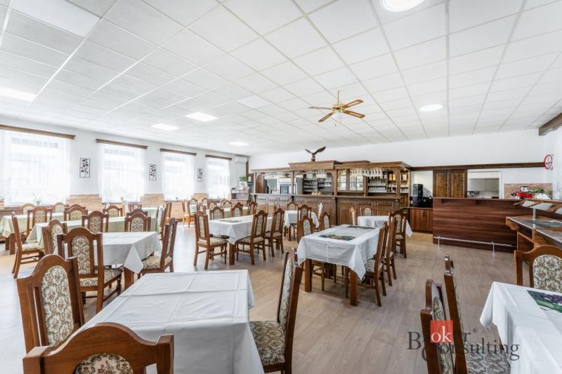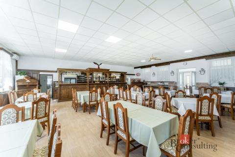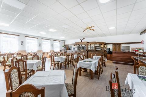 Nabízíme k prodeji rozsáhlý areál s restaurací, bytovou jednotkou a navazujícími pozemky v obci Vysoké Třebušice u Krásného Dvora, na dobře dostupném a viditelném místě u křižovatky komunikací s napojením na okolní města. Z nemovitosti je rychlé spojení na Krásný Dvůr, Podbořany i na silnici I/27, hlavní tah mezi Mostem a Plzní. Areál tvoří uzavřený celek s vjezdem přes bránu a velkou zpevněnou plochou sloužící jako dvůr, parkování pro hosty i prostor pro zásobování. Součástí je také rozlehlý pozemek s upravenou zahradou a venkovním zázemím. Dominantou zahrady je krásný dřevěný altán, který vytváří ideální místo pro venkovní posezení, svatby, rodinné oslavy či firemní akce. Hlavní budovu tvoří prostorná restaurace s velkým sálem s kapacitou přibližně 60–80 hostů. Interiér je světlý a velmi dobře udržovaný. Dominantou prostoru je stylový dřevěný bar s výčepem a kompletním zázemím pro restaurační provoz. Na hlavní sál navazuje samostatný salonek vhodný pro soukromé akce nebo menší společenské události. Velkou předností nemovitosti je rozsáhlá profesionální kuchyně ve velmi dobrém technickém i hygienickém stavu, vybavená gastronomickou technologií, nerezovými pracovními plochami, varnými bloky, konvektomatem a digestořemi. Součástí je také kompletní zázemí včetně přípraven, skladů a velkého chladicího boxu. Restaurace má zároveň dlouhodobou historii stabilního provozu a v období nejvyššího vytížení zde bylo připravováno až přibližně 2 000 jídel denně, a to jak pro hosty restaurace, tak pro okolní firmy a zaměstnance v regionu. Nemovitost tak nabízí potenciál pro okamžité navázání na zavedený gastronomický provoz. Součástí budovy je také samostatná bytová jednotka, která dosud sloužila jako zázemí majitele. Byt má navíc vlastní vstup zvenku, takže může sloužit nejen k bydlení provozovatele, ale také například k samostatnému pronájmu nebo ubytování. Na pozemku se nachází také další stavba určená k demolici. Výhodou pro nového majitele je, že součástí prodejní ceny je již zpracovaný projekt na výstavbu penzionu včetně schválené projektové dokumentace a vydaného stavebního povolení, což umožňuje navázat na připravený záměr bez nutnosti řešit další administrativu. Kompletní projektová dokumentace bude zájemcům k dispozici k nahlédnutí při osobním setkání. Celý areál je dlouhodobě pečlivě udržovaný a nabízí široké možnosti využití - od pokračování v gastronomickém provozu přes pořádání společenských akcí až po rozšíření podnikání například o ubytování. V případě zájmu o více informací nebo sjednání osobní prohlídky nás neváhejte kontaktovat. Velmi rádi Vás nemovitostí osobně provedeme a představíme vám její potenciál.