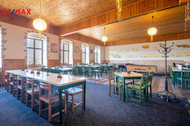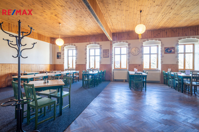 V prvním nadzemním podlaží je restaurace s kapacitou cca 80 míst, která může sloužit i jako sál pro různé akce, dále vybavená kuchyně a zázemí ke kuchyni, sklad, kancelář, toalety pro hosty atd. Součástí přízemí jsou další 2 větší místnosti, které v minulosti sloužily jako obchod, který je možné obnovit. Před restaurací je kryté venkovní posezení, s kapacitou 20 míst. Celková výměra přízemí je cca 262 m².