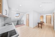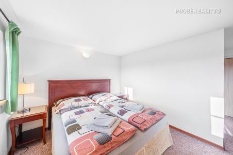 4 dvoulůžkové pokoje (1 s vlastní koupelnou a WC, ostatní sdílejí koupelnu s WC) a 2 kuchyňky na patře.