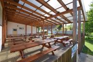 Venkovní zahrádka: 80 míst s dětským hřištěm a možností grilování (ideální pro letní provoz).