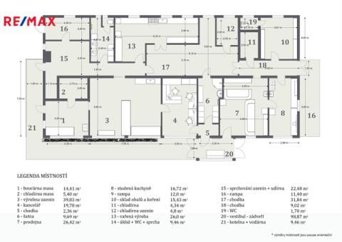 Užitná plocha prostoru je 290 m², uspořádaná pro efektivní provoz s kompletním zařízením a zázemím – výrobní prostory, sklady, zázemí pro zaměstnance, kanceláře a prodejní prostor (podrobný seznam movitých věcí, které jsou součástí prodeje, rádi pošleme na vyžádání). Objekt je flexibilní a po rekonstrukci vhodný i pro jiné typy podnikání, ať už jde o cukrářskou či potravinářskou výrobu, obchod s potravinami, domácími potřebami, oblečením nebo pro poskytování služeb dle potřeby.
