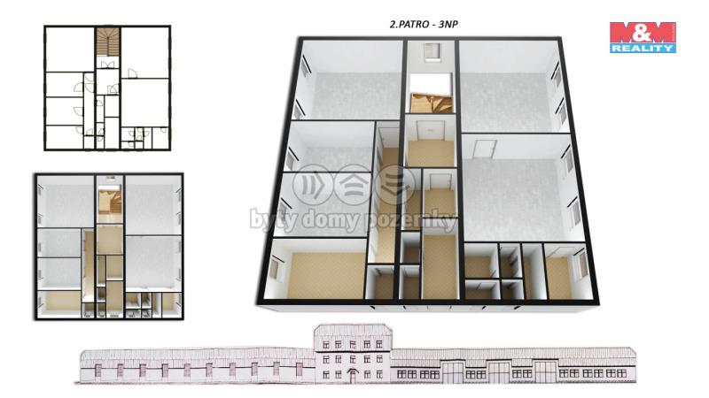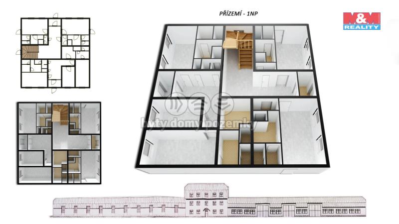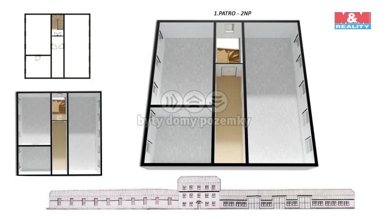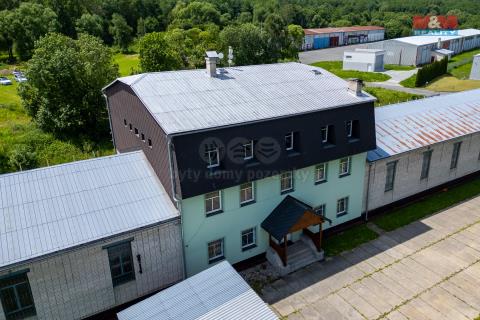 Ve výhradním zastoupení nabízíme prodej komerčního objektu - jedná se o dvě jednopodlažní zděné haly (v jedné je momentálně v provozu pila a zámečnická dílna, v druhé je prodejna elektromateriálu) a o hlavní zděnou budovu, která má 3 nadzemní podlaží (v přízemí jsou kanceláře, šatny a toalety, první patro je momentálně nevyužité a ve druhém patře jsou kanceláře, kuchyňka, toalety, kotelna a prostorný byt 3+1 s komorou). Původně to byl vojenský objekt, byly provedeny rozsáhlé stavební úpravy a kolaudace byla v roce 2010 - všude je hydroizolace včetně hal, v hlavní budově jsou plastová okna, v halách ocelová, vytápění plynovým kotlem a kamny na tuhá paliva, veřejný vodovod, veřejná kanalizace. Objekt se nachází v okrajové části města, na pozemku o CP 7272 m2, do centra je to pouhých 5 minut autem a celý areál je oplocený. Příjezdová cesta je obecní. Je mnoho možností jak objekt využít, část objektu je momentálně pronajatá. Ve fotogalerii jsou půdorysy jen hlavní budovy. Více info v RK.