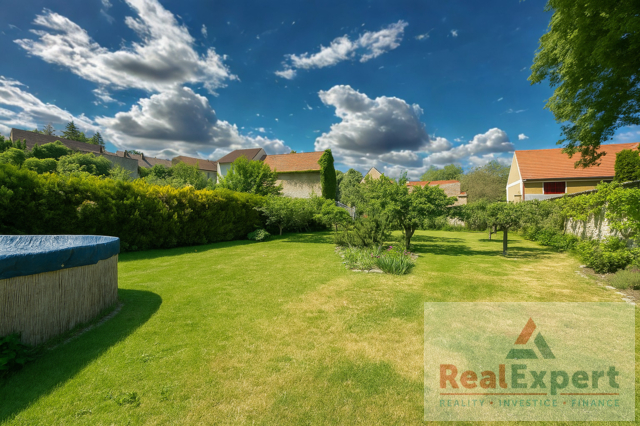 Zahrada s pečlivě udržovaným trávníkem, květinovými záhony, altánem a bazénem vytváří soukromou oázu klidu. Část pozemku lze po projednání s příslušnými úřady využít jako samostatnou stavební parcelu – ideální jako investice do budoucna.