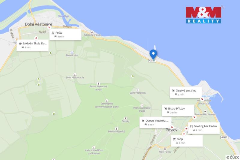 Nabízíme k prodeji atraktivní pozemek o výměře 600 m² v obci Dolní Věstonice, nacházející se v bezprostřední blízkosti vodní nádrže Nové Mlýny. Pozemek je situován na okraji vyhledávané oblasti Pálava, v klidném prostředí obklopeném přírodou a typickou atmosférou jižní Moravy. Dle územního plánu je pozemek vhodný k výstavbě rekreačního objektu, což z něj činí zajímavou příležitost jak pro vlastní rekreaci, tak i pro dlouhodobé zhodnocení investice. Lokalita je dlouhodobě velmi žádaná a nabízí široké možnosti volnočasového vyžití – cyklostezky, turistiku, koupání, vodní sporty i rybaření. Samozřejmostí je také blízkost vinařství a vinařských stezek, které k oblasti Pálavy neodmyslitelně patří. Pozemek je dobře přístupný a svým charakterem umožňuje realizaci rekreační stavby dle individuálních představ budoucího majitele. Pokud hledáte místo pro rekreaci nebo investici v jedné z nejatraktivnějších lokalit jižní Moravy, tato nabídka si zaslouží vaši pozornost.