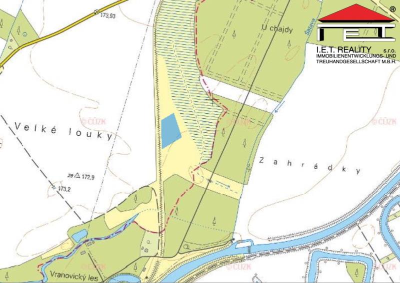 Prodej rovinatého pozemku 6440 m², v KÚ obce Vranovice nad Svratkou, mezi lokalitami Velké louky a Zahrádky. Jedná se o plochy ZT trvalé travní porosty a NH plochy lesů. - na plochách ZT lze v souladu s jejich charakterem "umisťovat stavby, zařízení a jiná opatření pouze pro zemědělství, vodní hospodářství, těžbu nerostů, pro protierozní a protipovodňovou ochranu, pro ochranu přírody a krajiny a dále taková technická opatření a stavby, které zlepší podmínky jeho využití pro účely rekreace, např. cyklistické stezky, hygienická zařízení, ekologická a informační centra - na plochách NH, pozemky vodních toků, lze "umisťovat stavby, zařízení a jiná opatření pouze pro lesní hospodářství, pro ochranu přírody a krajiny pro veřejnou dopravní a technickou infrastrukturu, přípojky a účelové komunikace, pro snižování nebezpečí ekologických a přírodních katastrof a pro odstraňování jejich důsledků Dle ÚP se pozemek parc. č. 4280 téměř celý nachází v aktivní zóně Q20 záplavového území vodního toku. Vzhledem k tomu bude potřeba konkrétní záměr předložit a konzultovat se stavebním úřadem v Pohořelicích.