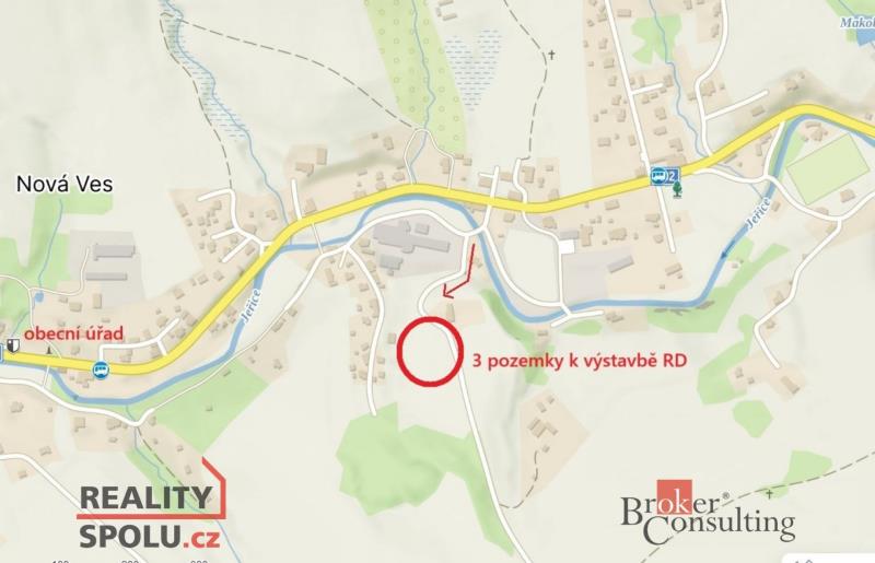 2 pozemky určené k výstavbě rodinných domů v Nové Vsi na pěkném slunném místě s dobrou dostupností a základními síítěmi v dosahu. pozemek č. 2 - 1001 m2 a pozemek č. 3 - 1141 m2, ke kterému náleží přístupový pozemek. Územní plán obce umožňuje na pozemcích výstavbu jednopodlažních rodinných domů s obytným podkrovím se zastavěnou plochou nadzemních staveb max. 15% a zachováním zeleně min. 70% z plochy pozemku. Zdroj vody - vrtaná studna, ČOV + zásak přečištěných a srážkových vod na pozemku. Elektřina - bude přípojka Detaily nabídky k dispozici u makléře.