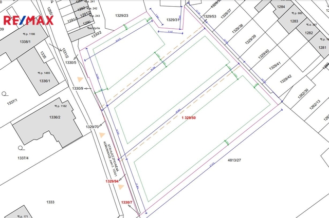 Poslední volný pozemek ze souboru stavebních pozemků v centru Hustopečí na ulici kpt. Jaroše. Pozemek o rozloze 1289 m² s uliční šíří 22 m a možností výstavby samostatně stojícího domu či řadového dvojdomu. Pozemek se nachází přímo v Hustopečích, s inženýrskými sítěmi dostupnými na hranici pozemku. Dle územního plánu je možné zastavit až 40% plochy pro stavbu domu s dvěma nadzemními podlažími, podsklepením a obytným podkrovím. Podrobné info: - Aktuální je územní plán po změně č. 6 města Hustopeče – schválený k pořízení 27.04.2023 usnesením ZM č. 7/V/23, nabytí účinnosti ke dni 11.07.2024 opatřením obecné povahy. Právě probíhá změna č.7 (schválení 19.12.2024 ZM č. 11/XVII/24) a 8 (schválení k pořízení 12.06.2025 uZM č. 7/XXII/25). Předmětná parcela se ve znění po změně č. 6 nachází ve stabilizované ploše zastavěného území s využitím BI plochy bydlení individuální. - Dle ÚP a kap. 2.1. a 2.2. je hlavním využitím plochy bydlení individuální je bydlení v rodinných domech. Přípustné jsou stavby pro bydlení v RD, stavby související, rodinné rekreace, technická a dopravní infrastruktura a jiné. Podmíněně přípustné jsou služby a provozovny slučitelné s bydlením. Nepřípustné jsou stavby pro skladování a výrobu neslučitelnou s funkcí bydlení a další nesouvisející. - Pozemek se nenachází v záplavovém území ani v aktivní zóně záplavových území ani v blízkosti takových území vodních toků. - Dle světových stran a vrstevnic je pozemek s mírným až středním severním až severovýchodním sklonem okolo 7 stupňů. Nadmořská výška se pohybuje od cca 197 m. n. m. po cca 205,6 m. n. m. Průměrné stoupání/klesání na 10 metrů je přibližně 1,2 metrů. - Musí být dodržena výšková hladina okolní zástavby, max. podsklepené 2 NP vč. podkroví. Je stanoven koef. zeleně 0,3 u řadových a 0,4 u samostatných RD. - K dispozici rozbor pozemku a územně plánovací informace. Uvedená výměra je orientační.