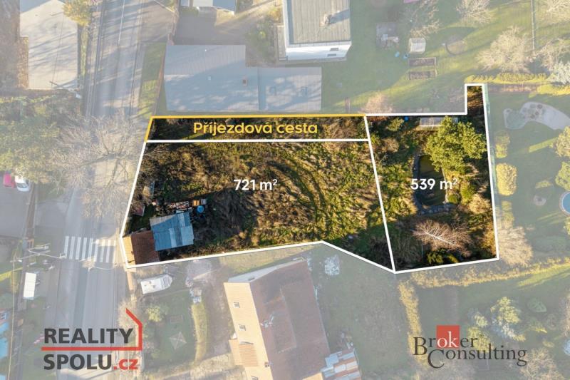 Nabízíme k prodeji soubor 5 pozemků o celkové výměře 1 402 m² v samotném srdci Dolních Jirčan. Pozemky se nacházejí v ploše BV2 – bydlení venkovské v zahradách dle platného územního plánu a představují mimořádně zajímavou příležitost jak pro individuální výstavbu rodinného domu, tak i pro developerský či investorský záměr. Varianty využití: Scelení do jednoho pozemku – ideální pro výstavbu prostorného rodinného domu v prestižní centrální lokalitě. Dělení na více parcel dle možností ÚP– možnost oddělení příjezdové komunikace a vytvoření dvou samostatných stavebních pozemků. Tato varianta je vhodná pro investora se záměrem výstavby 2–3 rodinných domů. Technické informace: Inženýrské sítě elektřina, voda a kanalizace jsou dostupné na hranici pozemku. Sjezd na pozemek je již vybudovaný z ulice Pražská. Funkční využití i možnosti dělení byly předběžně konzultovány s odborem územního plánování. Veřejná kanalizace, obec Dolní Jirčany realizuje novou ČOV s plánovaným dokončením v roce 2027, do té doby je nutné počítat s jímkami na vyvážení (stávající ČOV je kapacitně naplněna) Lokalita – hlavní benefity: Absolutní centrum obce – doslova pár metrů od Nové ZŠ AMOS Kompletní občanská vybavenost v bezprostředním okolí Výborná dostupnost do Prahy, navíc po dokončení D3 v této části (cca 2028–2030) dojde k zásadnímu snížení dopravní zátěže, což z lokality vytvoří klidné a velmi atraktivní bydlení Shrnutí: centrální poloha flexibilní využití (1 RD / 2 pozemky / developerský projekt) kompletní sítě u pozemku budoucí výrazné zklidnění dopravy skvělá investiční perspektiva