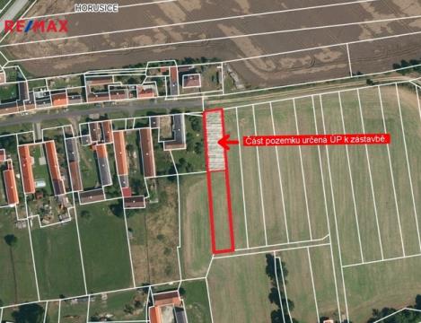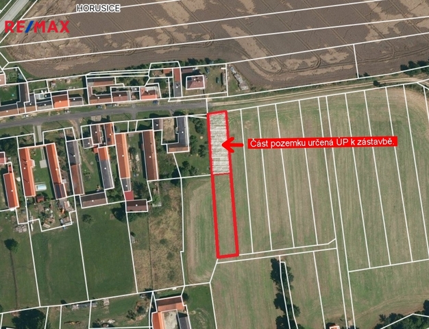 Nabízíme k prodeji rovinatý stavební pozemek 1664 m2 na okraji obce Horusice vzdálené necelé 3 km od Veselí nad Lužnicí. Aktuálně je právě na příjezdu od Horusic a Českých Budějovic dokončována nová obchodní zóna s řadou obchodů a služeb. Kompletní občanská vybavenost je k dispozici ve Veselí nad Lužnicí. Obec leží na břehu Horusického rybníka, třetího největšího rybníka v ČR, obyvatelé obce mohou využívat autobusové i vlakové spojení. Celková výměra pozemku je 1664 m2, z toho cca 690 m2 je zařazeno územním plánem do plochy bydlení v rodinných domech. Povolen je jednopodlažní rodinný dům s obytným podkrovím. Zastavitelnost pozemku max. 30%. Podrobnější informace z územního plánu najdete ve fotogalerii. Pozemek je aktuálně propachtován. Pachtovní smlouvu je možno ukončit dohodou po sklizni cca v srpnu. Budoucí stavbu je možno připojit na nově vybudovanou kanalizaci a vodovod v přilehlé komunikaci. Přípojka elektřiny bude k dispozici během první poloviny letošního roku. Přístup k pozemku po obecní komunikaci. Pozemek je volně přístupný, takže si ho lze kdykoliv prohlédnout. Pro další informace kontaktujte makléře nabídky. Prodávající si vyhrazuje právo vybrat kupujícího na základě jím zvolených kritérií.