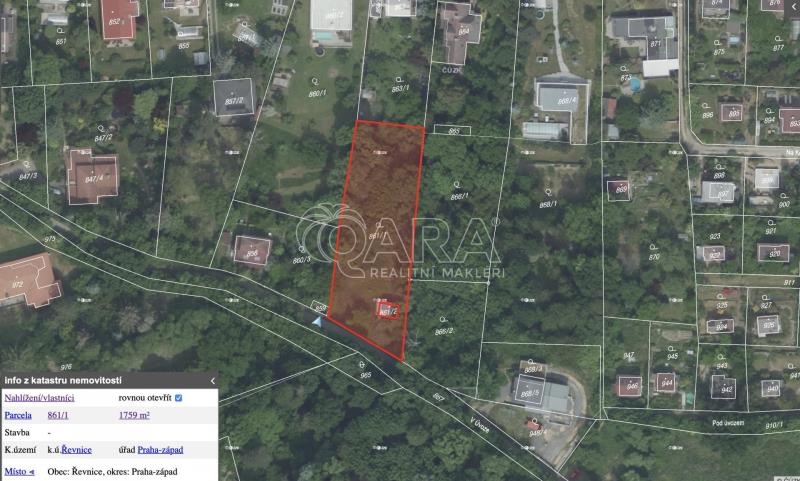 SLUNNÝ STAVEBNÍ POZEMEK 1784 m2 S DECHBEROUCÍM VÝHLEDEM - ŘEVNICE U PRAHY Hledáte svažitý pozemek pro Váš nový domov s dostatkem prostoru, soukromí a nádherným výhledem? Navíc v blízkosti krásné přírody Brdských lesů a dosahu Prahy? Pak jste ho právě našli. Tento jedinečný stavební pozemek o velikosti 1784 m2 se nachází na okraji žádané lokality Řevnic, v ulici V Úvoze. Jeho svažitý terén ocení především ti, kteří využijí tento potenciál pro výjimečnou stavbu s nevšedním výhledem na malebné údolí řeky Berounky a např. k realizaci kaskádové zahrady s jezírky a vodopádem či rybníčkem. Z pozemku lze dokonce spatřit i hrad Karlštejn. Díky vzrostlé zeleni, minimální zástavbě a okolnímu lesu Vám tento pozemek zajistí ničím nerušený klid a dostatek soukromí. Díky jeho výjimečné poloze na nejvyšším okraji města si dopřejete čistý a zdravý vzduch po celý rok, a to i během zimních měsíců, kdy se město potýká se smogem. Na oploceném pozemku se nachází vrtaná studna i elektro přípojka, kanalizaci lze napojit přímo u hranice pozemku a plyn je v dosahu 45 m. Dle ÚP je možné zastavět až 30% pozemku pro rodinný dům se 2 NP a max. výšce 11 m. Žádné ochranné pásmo neomezuje Vaše plány na výstavbu. Bližší detaily vč. aktuální územně plánovací informace Vám rád poskytnu na vyžádání. Vizualizace možného domu v nabídce. K rekreaci či jako zázemí pro budoucí stavbu lze využít zděnou chatku s garáží. Řevnice jsou velice oblíbenou lokalitou pro spokojený život, leží pouhých 10 km jihozápadně od Prahy a nabízí kompletní občanskou vybavenost: od škol, školek (včetně lesní), přes zdravotní služby, sportovní zařízení, až po kulturní vyžití jako je kino nebo lesní divadlo. Centrum města i nádraží jsou vzdáleny jen 850 m, a vlakem jste za 35 minut na Hlavním nádraží v Praze. Autem se pohodlně dostanete do širšího centra Prahy za 30 minut. Okolí Řevnic je rájem pro turisty a cyklisty, kteří ocení malebné stezky vedoucí skrz hluboké lesy Brd a Českého krasu. Milovníci přírody si mohou užít panoramatické výhledy na údolí Berounky a navštívit tajemné lomy i historické památky v okolí. Pokud Vás nabídka zaujala, neváhejte se objednat na prohlídku, kde Vás rád provedu tímto kouzelným místem. V případě více zájemců bude nemovitost prodána nejvýhodnější nabídce. Vizualizace možného domu je součástí nabídky.
