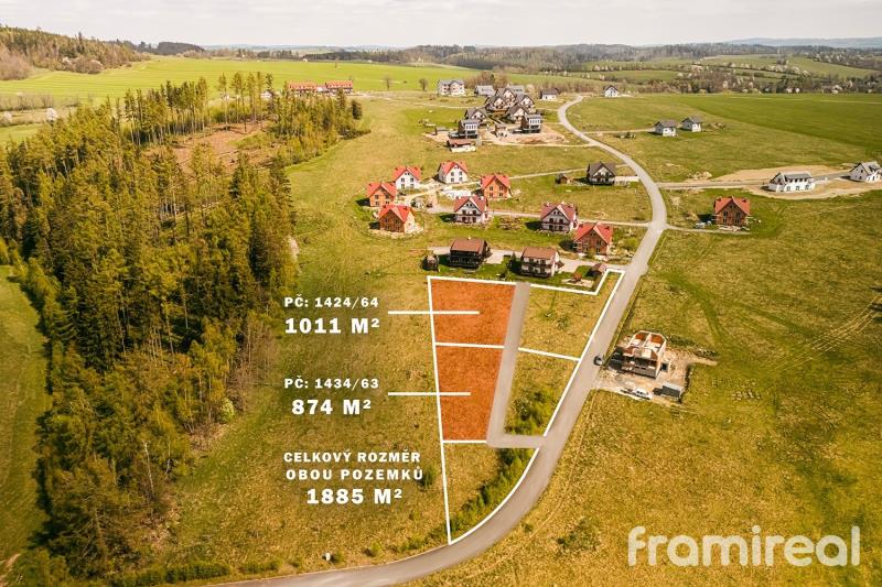 Nabízíme k prodeji 2 samostatné pozemky v rekreační oblasti Horního Václavova. V prodeji máme 2 pozemky (parcela 1434/63 o výměře 874 m2 a parcela 1424/64 o výměře 1011 m2) + část pozemku 434/309 (cca 100 m2) pro napojení na komunikaci. K pozemkům je připraven i projekt a aktuálně je v procesu odkup části pozemku 434/309 Dle platného ÚP se pozemky nachází v oblasti RS - rodinná rekreace smíšená V dané lokalitě je možno postavit apartmánový dům a nebo samostatnou roubenku. Po domluvě je možné projekt převzít a pokračovat v něm a nebo řešit dle vlastní představy. Sítě Elektřina, plyn + voda u hranice sousedního pozemku, napojení zajištěno Odpady - vlastní ČOV se vsakem