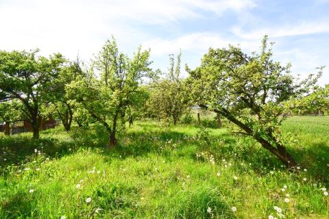 Pozemek je přístupný z obecní komunikace a v tuto chvíli je celý porostlý ovocnými stromy, trávou a keři.