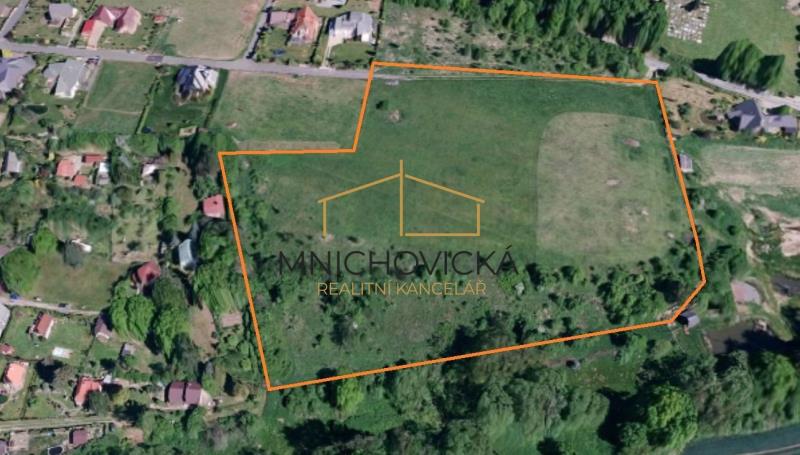 Nabízíme k prodeji velmi pěkný pozemek o výměře necelých 27.000 m2, navazující bezprostředně na území zastavěné moderními rodinnými domy, situovaný v klidné části obce Mnichovice, okr. Praha-východ. Na pozemek ústí asfaltová silnice (ul. Hrusická) s veškerými inženýrskými sítěmi (vodovod a kanalizace ve vlastnictví obce) a je tak možné jejich budoucí napojení. Nabízený celek je tvořen dvěma parcelními čísly, je z části rovinatý, z části mírně svažitý k jihu a z menší části středně svažitý k jihu. Pozemek je nyní v katastru nemovitostí veden jako trvalý travní porost a v územním plánu obce jako zemědělský – orná půda. Ve skutečnosti se jedná o atraktivní velkou louku, na které se nehospodaří (pozemek není ani propachtován). Louka bezprostředně sousedí se dvěma stavebními pozemky, o výměře každého z nich 1.500 m2, které je případně možné také zakoupit a realizací RD a přihrazením celé louky si tak vytvořit téměř 3 ha "zahradu" s jedním či dvěma rodinnými domy, kde každý RD může mít max. 3 bytové jednotky (lze tak například postavit i jen jednu stavbu s dvěma č.p. o celkem 6 bytových jednotkách, nebo jen 1 dům jako velké rodinné sídlo. Vlastníci RD či bytů by mohli užívat celou louku téměř 3 ha pro vlastní relaxační vyžití, či pro chov zvířat, nebo jako biofarmu atp.). Samostatně (bez přikoupení stavebních pozemků) je předmětný pozemek vhodný jako investice, kdy v budoucnu, po změně územního plánu na zastavitelné území, dojde k násobnému zhodnocení. Také by byl vhodný k výstavbě několika menších domů s pečovatelskou službou, včetně parku k procházkám, dále např. pro výstavbu obecních bytů v pěkných domech hodících se do krajiny apod. Vše záleží na budoucím vlastníkovi a vůli a přání zastupitelstva obce. Je také možnost zakoupit jen část pozemku. Současný územní plán obce pochází z r. 2018 a při jeho tvorbě nebylo zastavitelné území obce záměrně nikde rozšiřováno. Zatím je proto pozemek využitelný pouze např. pro pastvu koní, k pěstování plodin apod. Mezi fotografiemi je i vizualizace možného budoucího stavu. V obci je veškerá občanská vybavenost. Město Mnichovice se nalézá v malebném „Ladově kraji“, má výbornou dopravní dostupnost do Prahy, kdy je možné využít vlakové spojení na Hlavní nádraží, či jet autem po dálnici D1. Pár desítek metrů od pozemku se nachází autobusová zastávka.