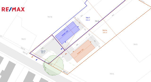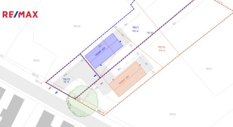 Ve fotogalerii najdete i geometrický plán s možností umístění samostatných domů na nabízeném pozemku a vedlejším pozemku parc. č. 791/7, který byl prodán na konci loňského roku.