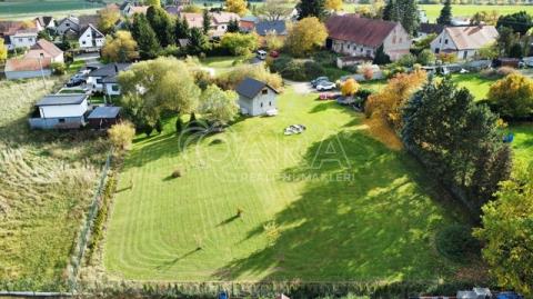 V územním plánu je pozemek vedený jako plocha smíšená obytná venkovská - plocha stabilizovaná, z inženýrských sítí je zaveden veřejný vodovodní řád, elektřina a veřejná kanalizace, připojení na plyn v příjezdové asfaltové komunikaci, která zajištuje přístup na pozemek. Součástí pozemku je také přírodní jezírko o rozloze 310 m², které přispívá k příjemnému prostředí a možnostem pro rekreační využití a dále podíl na příjezdové cestě, vyznačené na obrázku. Maximální podíl zastavění: Koeficient zastavění území max. 0,4 (poměr zastavěné plochy všech nadzemních částí stavby bez zpevněných ploch k výměře pozemku). Minimální podíl zeleně: 30% (podíl ploch zeleně, jako jsou travnaté plochy, zatravněné pobytové plochy, plochy užitkových a okrasných záhonů, k celkové ploše stavebního pozemku).
