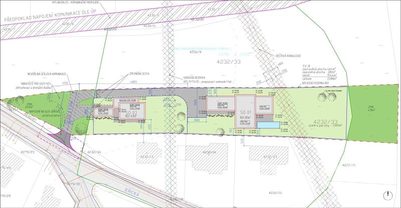Exkluzivně nabízíme stavební pozemek s platným stavebním povolením na dvě luxusní vily. První o výměře 377 m2, druhá 225 m2. Rozmístění je znázorněno v situaci v grafické části inzerátu. Komplex nabízí unikátní příležitost pro multigenerační bydlení v nejvyšší možné míře komfortu a soukromí. Větší vila nabízí vlastní příjezdovou cestu, dvě garážová stání a venkovní parkování. Dále terasu s bazénem a rozlehlou zahradu. Menší vila nabízí jedno garážové stání a další venkovní parkování. Půdorysy obou vil jsou pouze orientační, dispozice lze pozměnit. Pozemek lze rozdělit a prodat zvlášť odpovídající část pro stavbu jedné z vil. Pro více informací kontaktujte makléře. Horní Počernice jsou velmi prestižní lokalitou pro svoji dostupnost do centra Prahy, přestože jsou na dosah přírodě. Chlubí se veškerou občanskou vybaveností včetně mateřské školy, základní školy a gymnázia. Nemovitost se navíc nachází jen pár minut autem od nákupních center na Černém Mostě. V okolí jsou různá sportoviště, cyklostezky i například golfové hřiště. Konečná cena bez dalších poplatků je 37.498.000 Kč. V případě zájmu, nebo dalších dotazů, neváhejte kontaktovat makléře.