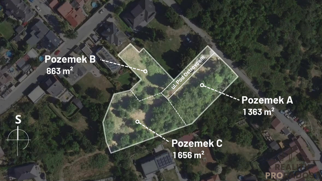 V exkluzivním zastoupení majitele nabízíme stavební pozemky v lukrativní části Kladna o celkové výměře 4189 m2. Celek je rozdělen na 4 části a to: Pozemek A – 1363 m2 Pozemek B – 863 m2 Pozemek C – 1656 m2 vlastní příjezdová komunikace s názvem ul. Pod Ostrovcem – 307 m2 Dle nového územního plánu je možnost postavit RD o 3 BJ na pozemku s min. výměrou 600 m2, což dělá z pozemků zajímavou investiční příležitost. Pozemky jsou kompletně zasíťované a zkolaudované ( voda, elektřina, kanalizace a plyn ). Na pozemky je vydané platné územní rozhodnuti pro výstavbu 3 rodinných domů. Pozemky jsou vhodné i k menšímu developerskému projektu. Díky své poloze nabízí pozemky slunce po celý den i krásné výhledy do okolí a směrem do centra. Velice klidná ulice, prestižní adresa, kompletní občanská vybavenost a výborná dopravní dostupnost do Prahy i centra Kladna, dělají z této nabídky jedinečnou příležitost pro realizaci vašeho bydlení. V nedaleké vzdálenosti od pozemku je veškerá občanská vybavenost obchody, restaurace, kavárny, školy, školky, dětská hřiště, aquapark a další občanská vybavenost v okolí. Dostupnost do Prahy bude díky aktuálně stavěné rychlodráze, ještě pohodlnější a rychlejší. V rámci našeho servisu Vám zdarma nabídneme možnosti financování, pro více informací nás prosím kontaktujte. Pro více informací nás kontaktujte.