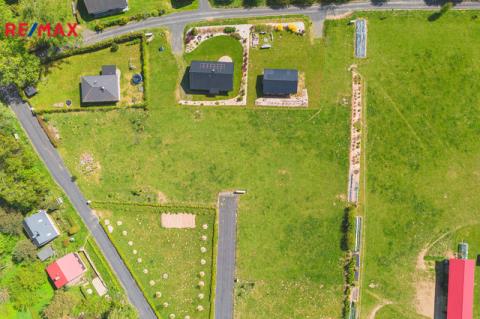 Pozemek o výměře 512 m2, k tomu id. ½ podíl příjezdového pozemku na severu o celkové výměře 105 m2 s šíří 6 m a v neposlední řadě vč. podílu na příjezdové cestě o celkové výměře 469 m2 s šíří 8 m, která je napojená na obecní příjezdovou cestu od hlavní silnice I/27.