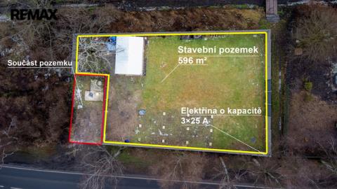 Rovinatý tvar parcely umožňuje umístění rodinného domu i vytvoření dostatečně velké zahrady. V současné chvíli je možné stavět pouze na části pozemku, a to z důvodu ochranného pásma vysokotlakého plynovodu ve vzdálenosti cca 30 m. Do budoucna, po jeho plánované výměně nebo přeložce, lze očekávat rozšíření stavební plochy. Středem pozemku také prochází kanalizace, která plochu výstavby rovněž omezuje svým ochranným pásmem. Díky oplocení a stávajícímu zázemí je navíc možné pozemek ihned využívat například k rekreaci nebo jako dlouhodobou investici.