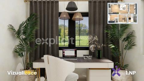 Vizualizace a vyobrazení nemovitosti a pozemku jsou pouze ilustrativní. Závazné údaje o hranicích pozemku jsou uvedeny v katastrální mapě.