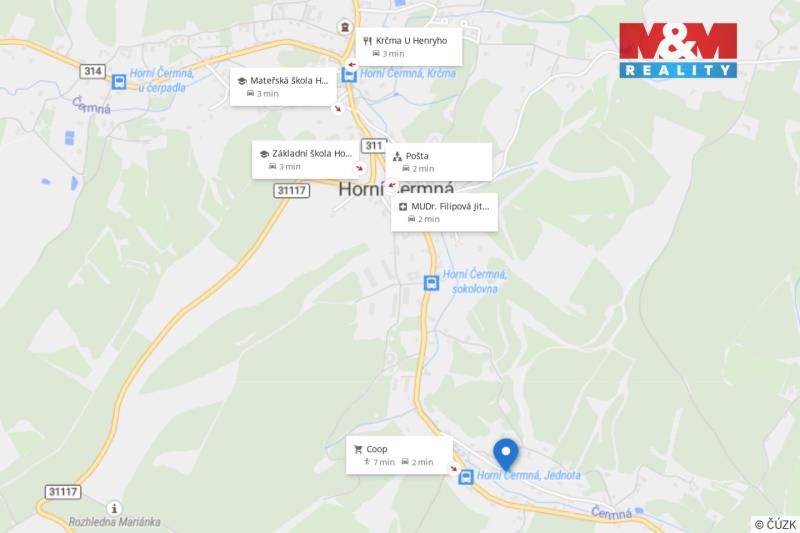 Nabízíme k prodeji stavební pozemek v obci Horní Čermná, která je vzdálená cca 6 km od Lanškrouna a cca 10 km od lyžařského střediska v Čenkovicích. Pozemek je dle územního plánu určen na výstavbu rodinných domů venkovského typu. Přístup k pozemku je zajištěn z veřejné a obecní komunikace. Na hranici pozemku je zavedena přípojka elektřiny, plynu, vodovodní přípojka a přípojka kanalizace. Atraktivitu nabízené nemovitosti zvyšuje krásná příroda a spousta příležitostí na volnočasové aktivity. Více informací vám rád poskytnu při prohlídce. V obci je zřízena základní škola, školka, obchod, obecní úřad i lékař. Výhodné financování vám pomůže zajistit náš finanční specialista.