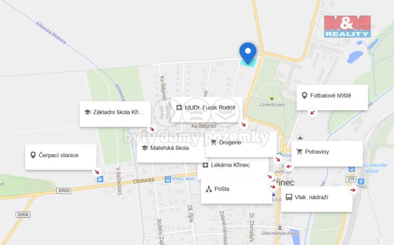 Hledáte ideální místo pro stavbu rodinného domu? Nabízíme k prodeji atraktivní stavební pozemek o výměře 1489 m² v oblíbené a klidné lokalitě městyse Křinec. Pozemek se nachází v zástavbě nově postavených rodinných domů a je jediný na prodej v této lokalitě, navíc rohový, což zajišťuje více soukromí a prostoru. Je kompletně zasíťovaný – napojení na vodovod, kanalizaci i elektřinu a je tak připravený k výstavbě rodinného domu. Městys Křinec disponuje veškerou občanskou vybaveností – MŠ a ZŠ, obchody, lékárna, zdravotní středisko, pošta, čerpací stanice, vlakové nádraží, atd.. V obci se nachází také historický zámek s kavárnou a pravidelnými kulturními akcemi. Nepropásněte jedinečnou příležitost ke koupi stavebního pozemku v lokalitě, která nabízí ideální podmínky pro klidné rodinné bydlení. Pozemek je možné financovat prostřednictvím hypotečního úvěru – s výběrem nejvýhodnější nabídky vám rádi pomůžeme. V případě zájmu nás kontaktujte.