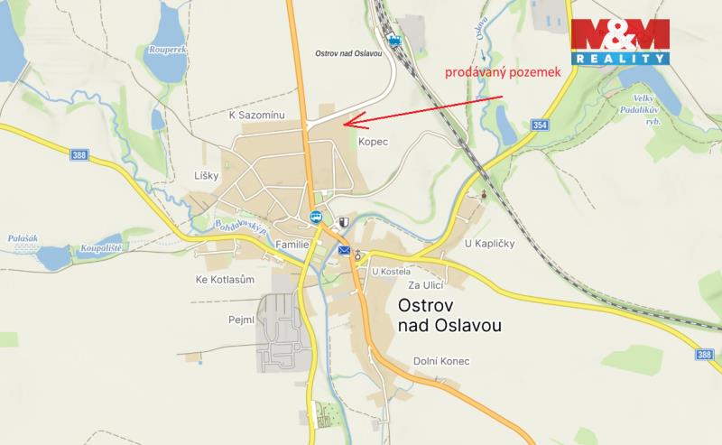 K prodeji, pozemky - stavební / komerční, Ostrov nad Oslavou