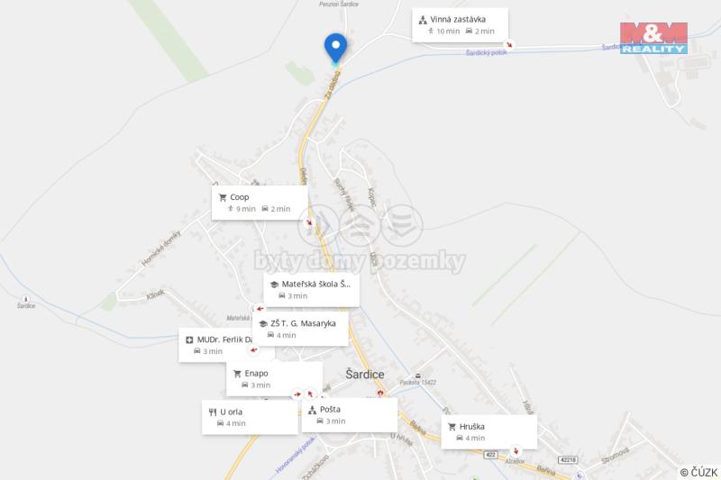 Prodej pozemku k bydlení v obci Šardice, okres Hodonín. Pozemek tvoří dvě sousedící parcely s celkovou plochou 399 m², situované v klidné okrajové části obce. Pozemek se nachází v rovinatém terénu a disponuje uliční šířkou 25 m. Na parcele 492 se nachází části původního domu č. p. 195 určeného k demolici, což budoucímu majiteli umožňuje okamžitě realizovat vlastní projekt. Parcela 491 je vedena jako zahrada. Pozemek je napojen na všechny IS s vyjímkou plynu, jehož přípojný bod se nachází na hranici pozemku. Za pozemkem se nachází hliněná stěna – břeh, ideální pro vybudování vinného sklepa. Součástí nabídky je rovněž využitelný stavební materiál, zejména pak střešní tašky. Výhody: Šardice jsou součástí atraktivní a vyhledávané lokality Moravské Toskánsko, pozemek se nachází v klidné okrajové části obce, možnost vybudování vinného sklepa, obec disponuje veškerým občanským vybavením. Vzdálenost do Kyjova 10 km. Financování zajištěno. Pro více informaci a prohlídky kontaktujte makléře.
