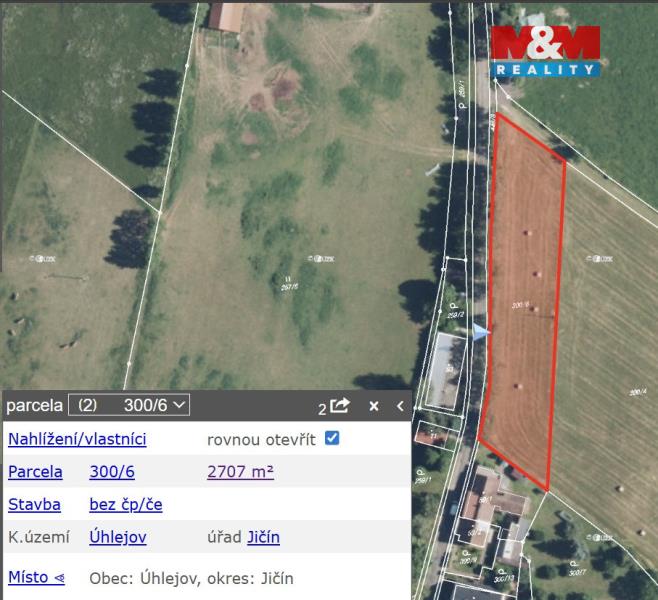 Každodenní pohled do zeleně, na východ slunce, ticho, zpěv ptáků a přitom kousek od města. Právě takové místo nabízí stavební pozemek o výměře 1 354 m² v obci Úhlejov. Pozemek leží na slunné jihovýchodním straně s krásným výhledem do krajiny. Má asfaltovou obecní příjezdovou cestu, elektřinu na hranici pozemku a díky své poloze je ideální pro stavbu rodinného domu nebo rekreační chaty. Úhlejov je klidná vesnička v srdci Podkrkonoší, jen 2 km od Miletína, 8 km od Hořic a v dojezdové vzdálenosti Lázní Bělohrad či Dvora Králové nad Labem. V okolí najdete turistické trasy, cyklostezky i kulturní památky. Za pár minut jste u Zvičiny s rozhlednou a Raisovou chatou, v Miletíně je rodný dům K.J.Erbena, kousek jsou Hořice, hrad Pecka. Tento pozemek nabízí kombinaci klidu venkova a pohodlné dostupnosti města – místo, kde můžete zpomalit, nadechnout se a vytvořit si domov přesně podle svých představ.