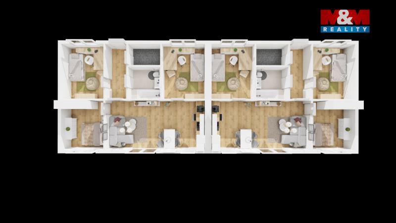Pozemek v katastrálním území Žáky je určen pro výstavbu moderního dvojdomu, který nabídne komfortní bydlení v klidné lokalitě. Součástí projektu je novostavba dvojdomu s dispozicí 4+kk a užitnou plochou cca 72 m² pro každou jednotku. Ke každému domu náleží vlastní zahrada a parkovací stání přímo na pozemku, což zajišťuje dostatek soukromí i pohodlí pro každodenní život. Dispozice je řešena s důrazem na praktičnost a moderní styl – obývací pokoj s kuchyňským koutem, koupelna, samostatné WC a další pokoje vhodné jako ložnice či dětské pokoje. Přehledné uspořádání místností je patrné z půdorysu . Vytápění bude řešeno tepelným čerpadlem, které zajistí nízké provozní náklady a energeticky úsporný provoz. Lokalita nabízí příjemné a klidné bydlení s dobrou dostupností do okolních měst a veškerou občanskou vybaveností v dojezdové vzdálenosti. Ideální volba pro rodinné bydlení i jako zajímavá investiční příležitost.