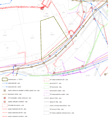 Inženýrské sítě vedou vedle pozemku. Jedná se o elektrické vedení, vodovod i spádovou kanalizaci. V obci se také nachází plynovod, avšak prozatím nevede přímo v ulici procházející vedle pozemku.