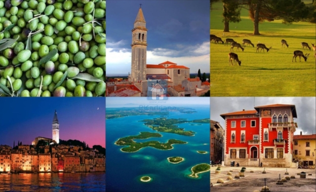 Vzdálenosti 400m-5km od pobřeží, Pula 17 km, Rovinj 20 km, Lublaň 192 km, Záhřeb 256 km, Terst 111 km, Benátky 273 km