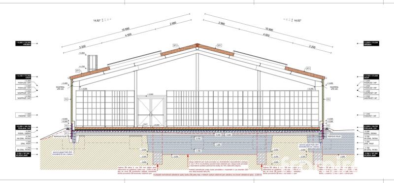 Prodej komerčního pozemku se stavebním povolením na výstavbu moderní skladovací a prodejní haly s administrativním zázemím o celkové zastavěné ploše 1 240,25 m², navržené v energetické třídě A. Dobrý den, dovolujeme si Vám nabídnout atraktivní komerční pozemek o ploše 2 465 m², určený k realizaci novostavby skladovací a prodejní haly dle platného stavebního povolení. Lokalita je snadno dostupná, elektřina je již přivedena na pozemek, je vyhotoven projekt napojení na obecní vodovod a celý areál je obsloužen místní asfaltovou komunikací. Navržená hala je jednopodlažní objekt s ocelovou nosnou konstrukcí a moderním opláštěním z PIR panelů. Dispozice zahrnuje dvě rozsáhlé skladovací plochy o výměře 595,43 m² a 360,77 m², zásobovací prostor a administrativní část o 172,83 m² určenou pro zaměstnance i zákazníky. Energetická náročnost budovy je ve třídě A díky navržené kvalitní tepelné izolaci, moderní střešní skladbě a použití tepelného čerpadla vzduch–voda jako hlavního zdroje tepla. Celková užitná plocha objektu činí 1 185,68 m². Součástí projektu je kompletní řešení hospodaření s vodami. Dešťové vody jsou svedeny do sestavy železobetonových jímek, které zároveň slouží jako požární nádrž. Splaškové vody jsou odváděny do samostatné jímky. Celkový návrh je funkčně připraven pro moderní a efektivní provoz. Pozemek nabízí výborné podmínky pro zásobování a manipulaci s materiálem, což jej činí ideálním pro logistiku, distribuci či provoz prodejního skladu. Díky vydanému stavebnímu povolení lze s realizací stavby začít okamžitě. Tento projekt představuje jedinečnou příležitost pro podnikatele, investory či firmy, které hledají moderní, energeticky úsporný a kapacitně velkorysý prostor pro skladování, lehkou výrobu nebo kombinaci s prodejní funkcí. Pro více informací nás neváhejte kontaktovat. Rádi Vám poskytneme projektovou dokumentaci, technické podklady i detailní informace k možnostem využití objektu.
