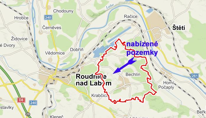 . Prodej pozemku (rokle, zahrada k rekreačnímu využití a dalším aktivitám) v Bechlíně, okres Litoměřice mezi Roudnici nad Labem a Štětím, má výměru 10.731m2, je vedený v katastru nemovitostí jako ostatní plocha - manipulační plocha a jiná plocha. Je přístupný po obecní cestě a momentálně je zarostlý náletovým porostem. Dříve byl pozemek zavezený kůrou ze stromů z papíren ze Štětí, která byla časem po jejím zetlení odbagrována a odvezena. Je zde velký klid soukromí. Více informací v RK.