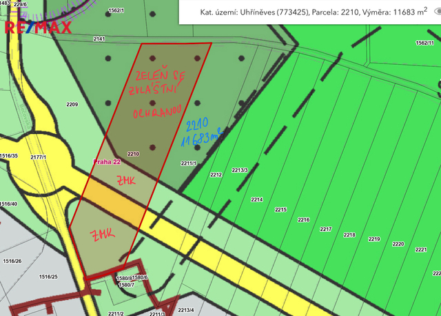 Nabízíme k prodeji soubor tří pozemků na okraji Uhříněvsi v přímém sousedství komerční zástavby. Aktuálně se využívají jako orná půda - pole. První pozemek má výměru 11683 m2, v územním plánu je část vedena jako louky/pastviny a část jako plocha oddechu. Druhý pozemek má výměru 6438m2, v územním plánu je větší část vedena jako plocha oddechu a malá část (asi 700 m2) je určena pro tichou, nerušící výrobu. Třetí pozemek má výměru 22259 m2, a je situován mezi poli se samosběrem jahod Schwenk. Část pozemku je vedena v územním plánu jako louky/pastviny a část plocha oddechu. V létě roku 2026 by mělo dojít k výkupu části pozemku státem pro výstavbu dálničního přivaděče od Pražského okruhu do Uhříněvsi. Proto nelze zatím přesně určit, kolik jednotlivé části dle územního plánu budou mít výměru. Lze ovšem tyto pozemky považovat za spekulativní nemovitost. Pozemky je možné koupit samostatně nebo v souboru tří pozemků v celkové výměře 40 tis. m2. Pro více informací volejte.