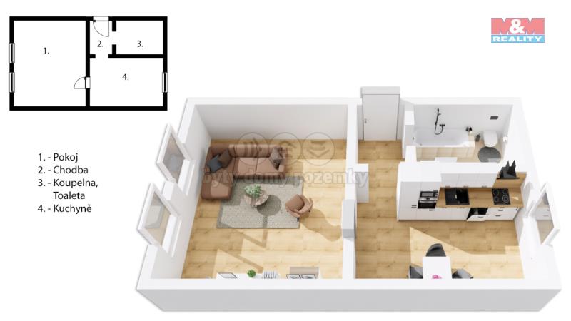 K pronájmu, Byt 1+kk, 32 m2 Vrchlabí, Českých bratří