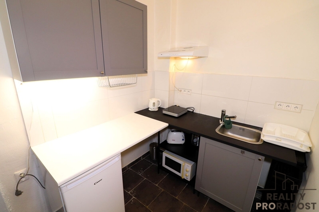 Nabízený byt s dispozici 1+1 o celkové ploše 30m² s je rozdělen samostatnými vstupy z předsíně domu, ze které je vsup pokoje/ložnice propojené s kuchyní a koupelnou: