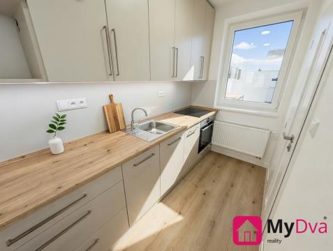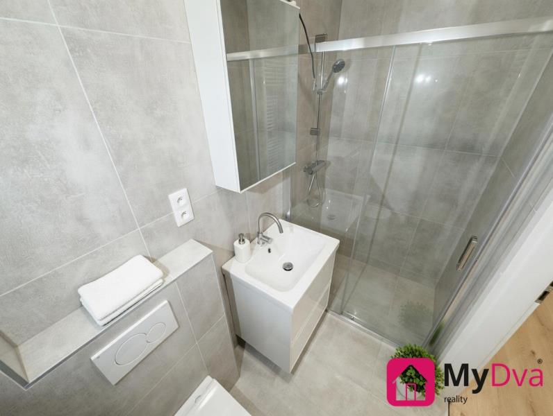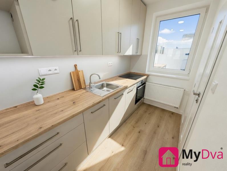 Nabízíme k pronájmu novostavbu bytu v cihlovém bytovém domě. Byt o dispozici 1+1 a o podlahové ploše 33 m2. Byt se skládá z kuchyně spojené s předsíní, prostorného pokoje, ze kterého je vstup na vlastní velkou terasu. Terasa je v tomto období před dokončením a na fotografii je pouze její vizualizace. Dokončena bude v létě 2026, ale i v současné době se dá využívat. Koupelna je vybavena sprchovým koutem a je spojena s toaletou. Byt se pronajímá nevybavený a je ihned volný k pronajmutí. Buďte prvním nájemníkem v novém bytě! Máte zájem o více informací? Volejte makléři a navštivte naše stránky mydvareality. K ceně nájmu bude připočtena kauce a provize RK. Uvedené výměry jsou orientační.