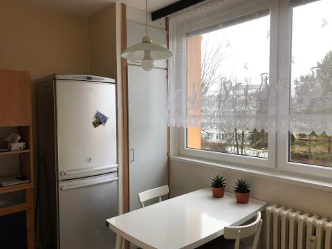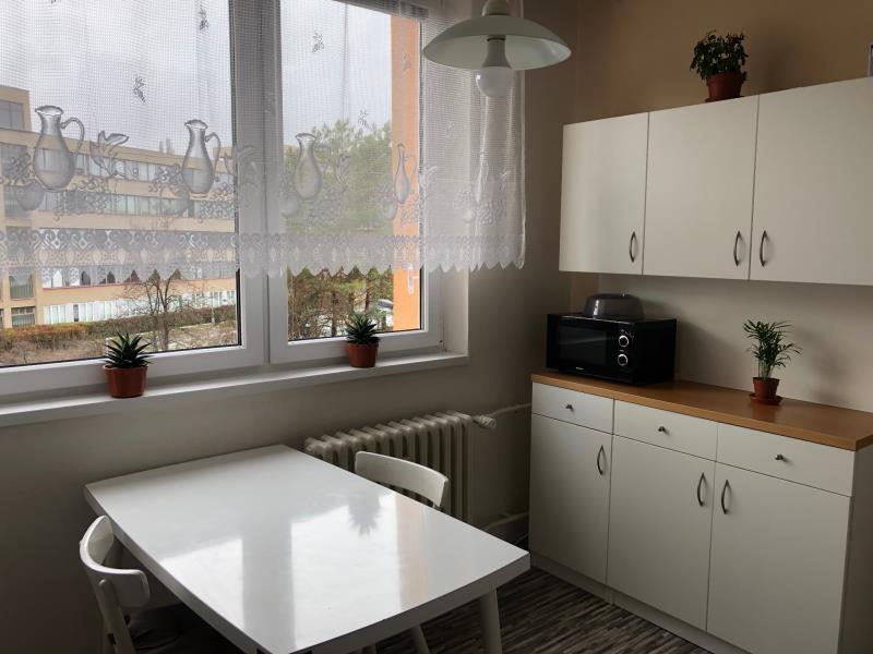 Pronájem částečně zařízeného slunného bytu o velikosti 1+1 s prostornou zasklenou lodžií a sklepem. Byt je situován ve 3.NP/8.NP revitalizovaného panelového domu s novou fasádou, zateplením, plastovými okny a novým výtahem. Dům se nachází ve vyhledávané lokalitě Vyškova s bezproblémovým parkování před domem nebo na přilehlém parkovišti naproti domu. Dispozice a výměry: CP 35 m2 vč. lodžie + sklep Z předsíně se vstupuje do koupelny s WC, samostatného pokoje s lodžií a kuchyně. Kuchyně 8,87 m2; pokoj 16,03 m2; předsíň 3,17 m2; koupelna s WC 2,92 m2; lodžie 4,18 m2, sklepní kóje 1,43 m2. Vybavení: kuchyňská linka na míru vč. sporáku se sklokeramickou varnou deskou a el. troubou, digestoř, spíž, jídelní stůl se 4 židlemi, vestavěná skříň v předsíni, plastová okna vč. žaluzií, samostatná měřidla na vše, nové stupačky, obložené koupelnové jádro se sprchovým koutem a diskrétně odděleným WC. Byt je připraven k nastěhování od 1.2.2026. Bližší informace v RK. První prohlídky bytu budou probíhat v prvním týdnu 1/2026.