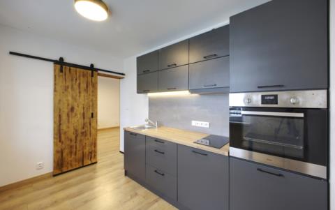Na pronájem byt o dispozici 1+1 o podlahové ploše 36,8 m² ve Vítězné ulici v Chodově. Největší výhodou je moderní a designově velmi zdařilá rekonstrukce s důrazem na detail a praktické využití prostoru. Byt se nachází v 6. patře panelového domu s výtahem. Kuchyňská linka je provedena v elegantní barvě granit a doplněna pracovní deskou v dekoru dřeva, která prostoru dodává příjemný a teplý charakter. Kuchyně je vybavena troubou značky Whirlpool, sklokeramickou varnou deskou a designovou digestoří. Na kuchyň navazuje obývací pokoj s plovoucí podlahou v dekoru dřeva, který je vybaven rozkládací pohovkou. Celý byt působí velmi moderně díky sladěným prvkům, jako jsou černé minimalistické lišty a stylové posuvné dveře z masivního dřeva s černým kováním. Velkou výhodou je jižní orientace oken, která zajišťuje dostatek denního světla po celý den, přičemž okna jsou opatřena plisé žaluziemi. Koupelna je řešena ve velmi moderním stylu a disponuje sprchovým koutem, závěsným WC, velkým zrcadlem a kvalitními obklady v kombinaci tmavých tónů a dekoru dřeva. Byt má také prostornou předsíň, která nabízí dostatek místa pro uložení věcí. Součástí bytu je pračka a rozkládací pohovka, které je možné odkoupit. Dům je udržovaný a vybaven výtahem, společné prostory jsou čisté a dobře spravované. Lokalita v Chodově nabízí dobrou občanskou vybavenost i dostupnost služeb. V okolí se nachází obchody, restaurace i další služby a je zde také dobré dopravní spojení. Měsíční nájemné činí 10 000 Kč. Zálohy na služby (teplo, teplá voda, voda, elektřina společných prostor, výtah) jsou 3 000 Kč. Elektřinu si nájemce převádí na sebe. Vratná kauce je 20 000 Kč, provize realitní kanceláře 10 000 Kč.
