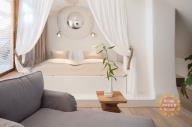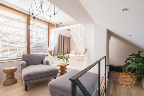 Luxusně zařízený byt 1+1 o celkové výměře 38 m2, plně zařízený duplex s terasou v 5. patře sescesní budovy bez výtahu v ulici Holečkova. Bez provize RK. Byt sestává ze dvou pater: v horním patře je ložnice s king size bed s nebesy a obývacím prostorem se sofa, v dolním patře je zařízen kuchyňskou a jídelní částí vybavenou kuchyňskou linkou, jídelní kout se stolem a židlemi, TV/SAT, WIFI, koupelna a WC, v předsíni je šatní skříň, v apartmánu je klimatizace. V domě jsou možné excelentní služby. Možnost připojení k vysokorychlostního internetu, který zajišťuje plnohodnotnou práci z domova (již zahrnuto v ceně). Jednou týdně průběžné úklidy bytů s výměnou povlečení a ručníků, pohotovostní služba 24/7, recepce denně 9-16hod, možnost využití zrekonstruovaného lobby, které poskytuje příjemné posezení. Byt se nachází v těsné blízkosti tram zastávky U Zvonu, 5 min na metro Anděl. Dostupné k pronájmu po domluvě.