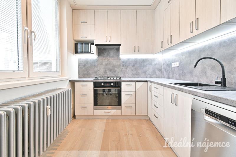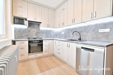 Jedná se o nezařízený byt. Vybavení zahrnuje novou kuchyňskou linku s varnou deskou, mikrovlnou troubou, troubou a myčkou.