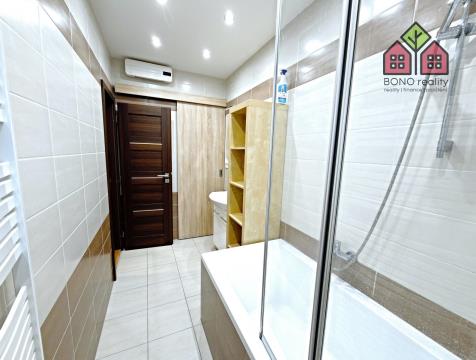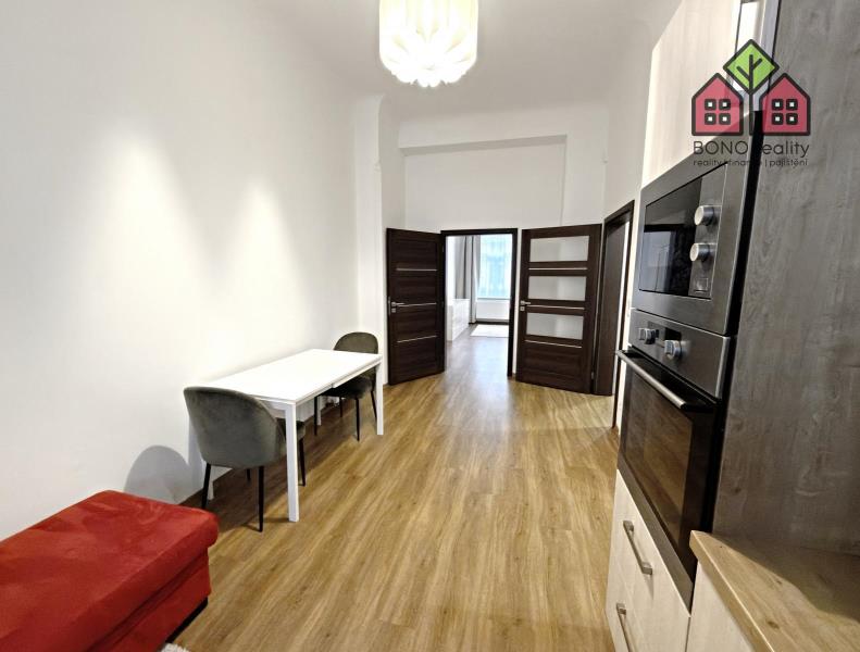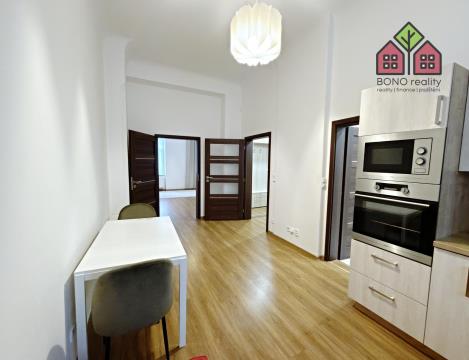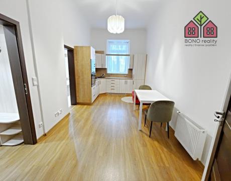 Realitní kancelář Vám nabízí k dlouhodobému pronájmu bytovou jednotku o dispozici 1+1, po kompletní rekonstrukci, a to v Litoměřicích, v ulici Rooseveltova. Bytová jednotka je umístěna ve zvýšeném přízemí cihlového domu a její podlahová plocha činí 59,0 m2. Velmi klidný a pečlivě udržovaný dům se nachází téměř v centru města, ve starší vilové zástavbě. Součástí bytu je pak i jeho kompletní vybavení, vyobrazené na fotografiích. Vstup do bytové jednotky tvoří chodba s přístupem do kuchyně, která je dále průchozí do pokoje a do koupelny. V kuchyni je moderní linka s vestavěnými spotřebiči a jídelní stůl se židlemi, který může sloužit i jako počítačový koutek. Ve velkém pokoji, který Vám bude ale sloužit i jako část spací, je umístěna sedací souprava, dvoulůžko či šatní skříň. V koupelně je k dispozici vana se zástěnou, umyvadlo, společná toaleta s oknem a posuvnými dveřmi a oddělený a uzavíratelný prostor s automatickou pračkou. Okna jsou plastová a na podlaze je položena dlažba nebo plovoucí podlaha. V chodbě jsou vestavěné úložné prostory se zrcadlovou částí a věšákovou stěnou. K dispozici je menší zděný sklípek o výměře 3,6 m2. Vytápění bytové jednotky a ohřev teplé vody pak zajišťuje kombinovaný plynový kotel. Měsíční nájemné činí částku 15.000,-Kč a dále je nutné k rukám pronajímatele hradit měsíční zálohovou částku ve výši 1.000,-Kč za vodné a stočné, která Vám bude jednou ročně vyúčtována. Odběr elektrické energie a plynu pak bude přepsán na nového nájemce, který si tak může sám určit výši jejich měsíčních záloh u vybraného obchodního poskytovatele energií. Vratná kauce činí částku 20.000,-Kč. Byt je určen pro maximálně 1 - 2 osoby, podmínkou pronájmu je pak doložení pracovní smlouvy nebo jiného zdroje vlastních příjmů (podnikatelé). Pro více informací a sjednání prohlídky bytu pak volejte realitní kancelář. Provize realitní kanceláře činí částku 15.000,-Kč.