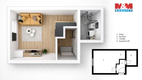 K pronájmu, Byt 1+kk, 29 m2 České Budějovice, K. Chocholy