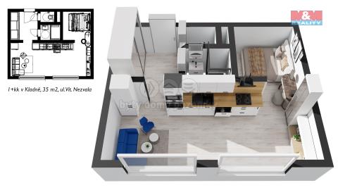 K pronájmu, Byt 1+1 Kladno, Míru