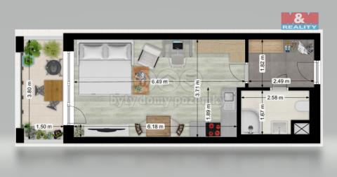 K pronájmu, Byt 3+kk, 58 m2 Bělčická