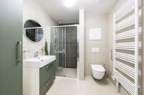 K dlouhodobému pronájmu nabízíme prostorný byt 1+kk (37 m2) s vlastní terasou a navazující předzahrádkou (84 m2) v Plzni v Liticích, ulice Vysoká. Byt se nachází ve zcela nově vybudované rezidenční čtvrti Litice - Vyhlídka. Dosud nikým neobývaná bytová jednotka je situována v 1. nadzemním podlaží (z celkových 4) energeticky velmi úsporné novostavby (třída B). Dispozičně je členěna na prostorný pokoj s kuchyňským koutem, předsíň a koupelnu s toaletou. Velká francouzská okna nejen příjemně prosvětlují obývací pokoj, ale zároveň umožňují vstup na terasu s předzahrádkou. Terasa je vybavena venkovním vývodem vody, zásuvkou a osvětlením, což z ní činí ideální prostor pro relaxaci i drobné zahradničení. K bytu náleží také zděná sklepní kóje (3 m2) s plnými dveřmi umístěná prakticky na patře vedle bytu. Byt je vybavený moderní kuchyňskou linkou včetně vestavné elektrické trouby, indukční varné desky, digestoře, mikrovlnné trouby a myčky nádobí. Součástí vybavení je také jídelní stůl s židlemi, vestavěná šatní skříň v předsíni, věšák s botníkem, koupelnový nábytek, kompletní osvětlení a závěsy se záclonami. Vytápění a ohřev teplé vody pro celý bytový dům zajišťuje tepelné čerpadlo a fotovoltaické panely. V celém bytě je instalováno podlahové vytápění a v koupelně je navíc topný žebřík. Spotřeba energií je měřena individuálně pro každý byt. Litice nabízejí skvělé rekreační podmínky, přímou dostupnost MHD (BUS č. 21), rychlé napojení na dálnici D5. Cenové podmínky pronájmu: • Nájemné 13.500 Kč/měsíc • Zúčtovatelné zálohy na energie a služby vyjma elektřiny 2.400 Kč/1 osoba/měsíc 2.800 Kč/2 osoby/měsíc • Elektřina se převádí na nájemce (cca 1.000 Kč/měsíc) • Jistota (vratná kauce) 27.000 Kč • Provize RK 16.400 Kč K nastěhování ihned. Pro bližší informace či domluvení prohlídky volejte na uvedený mobilní telefon.