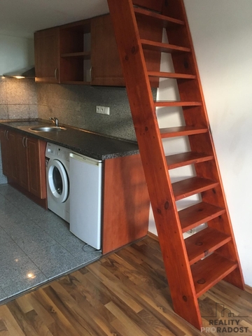 Byt sestává z chodby, koupelny s vanou a záchodem a obývacího pokoje s kuchyňským koutem s patrem na spaní. Součástí vybavení bytu je kuchyňská linka, lednice, pračka, nerezová sklokeramická varná deska, digestoř. Byt je velmi klidný a tichý a má výhled do vnitrobloku. Světla jsou na dálkové ovládání, s možností změny intenzity i teplota světla. Topení je ústřední a okna jsou plastová.